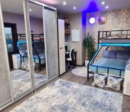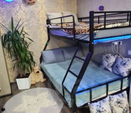 В квартире установлен кондиционер Haier, что создаст комфортную атмосферу в любое время года. Просторная комната разделена на две зоны: спальню и детскую, каждая из которых имеет отдельное освещение. Возможность зонирования пространства с помощью перегородки делает эту квартиру удобной для семей с детьми.