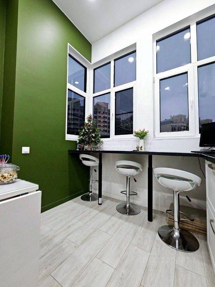 на кухне дорогой гарнитур со всеми удобствами (остается при продаже) и встроенной техникой,
