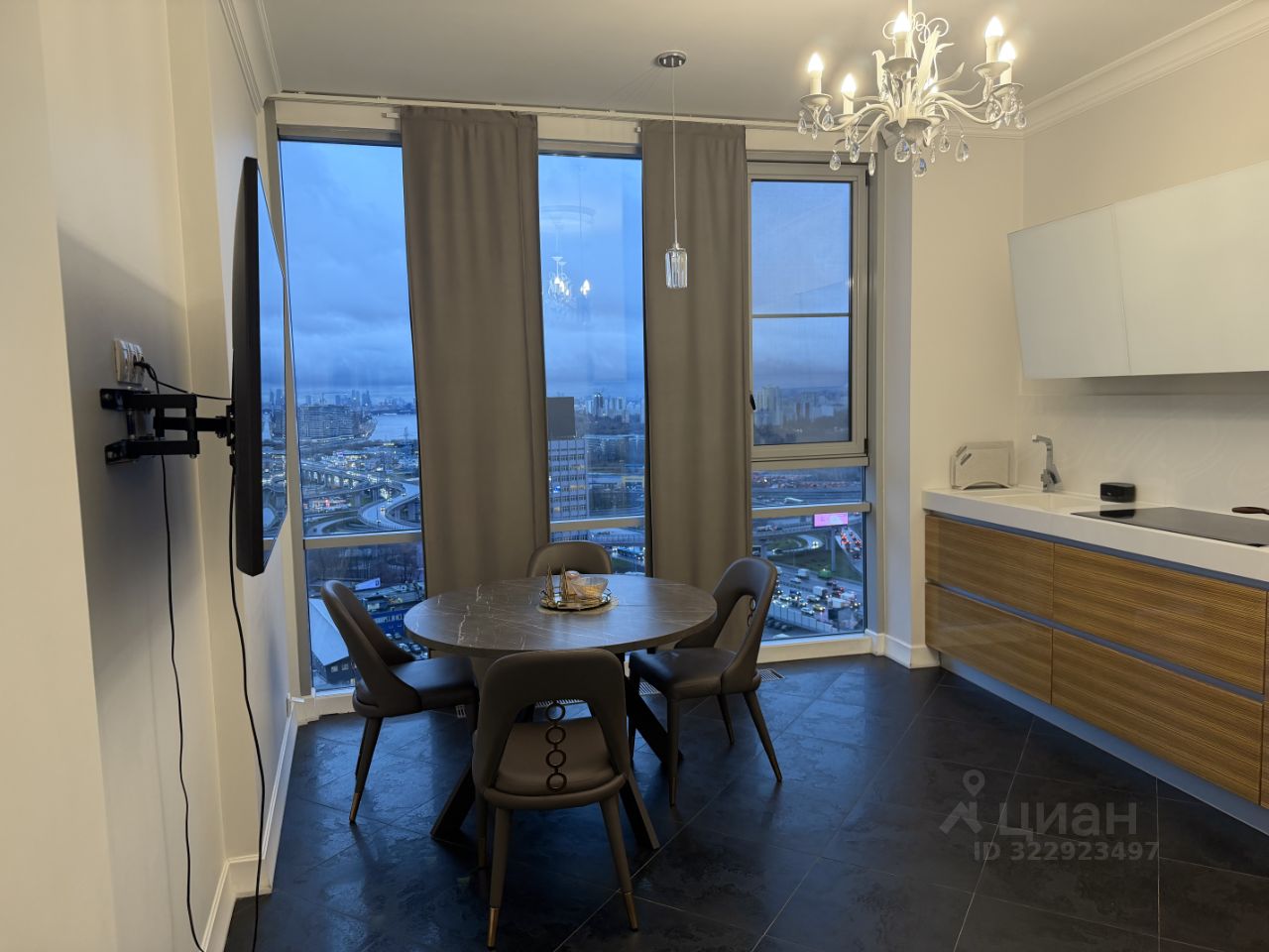 Видовая просторная квартира с видом на Москву, с панорамными окнами в пол и современным ремонтом.