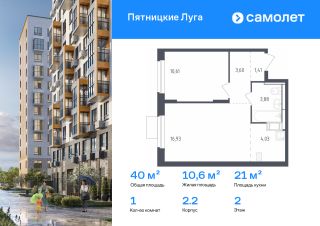 Строим кварталы для жизни с заботой о будущем. Предлагается 1-комнатная квартира комфорт-класса 40 кв.м в корпусе 2.2 на 2 этаже, в ЖК "Пятницкие Луга"