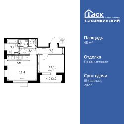 Продаётся 2-к квартира номер 165 общей площадью 48.4 кв.м. на 13-м этаже 17 этажного здания. Отделка Whitebox. Цена с учётом скидки.