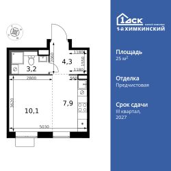 Продаётся квартира-студия номер 218 общей площадью 25.5 кв.м. на 17-м этаже 17 этажного здания. Отделка Whitebox. Цена с учётом скидки.