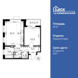 Продаётся 2-к квартира номер 222 общей площадью 46 кв.м. на 17-м этаже 17 этажного дома. Отделка Whitebox. Цена с учётом скидки!