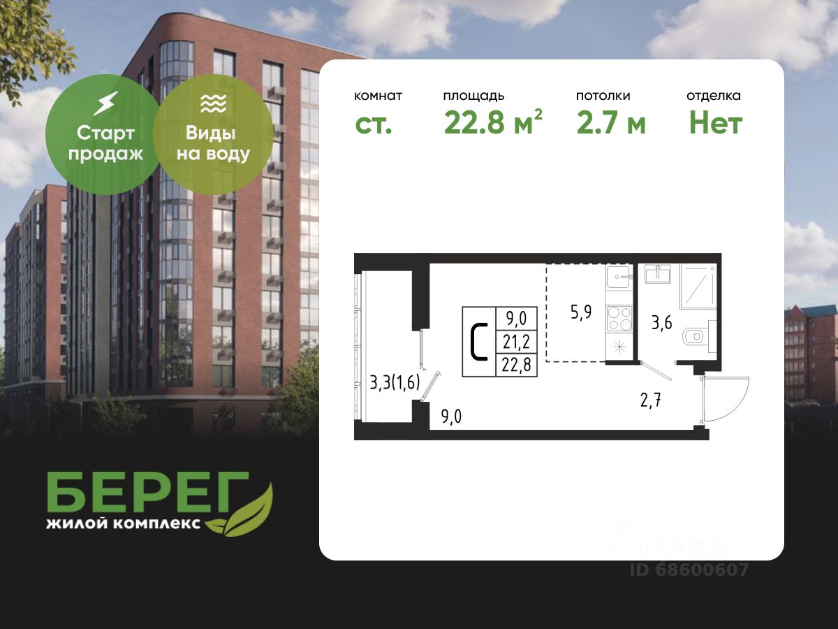 Продаётся студия в строящемся доме (Корпус 4 (2 очередь)), общей площадью 22.80 кв.м., на 2 этаже.