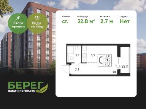 Продаётся студия в строящемся доме (Корпус 4 (2 очередь)), общей площадью 22.80 кв.м., на 2 этаже.