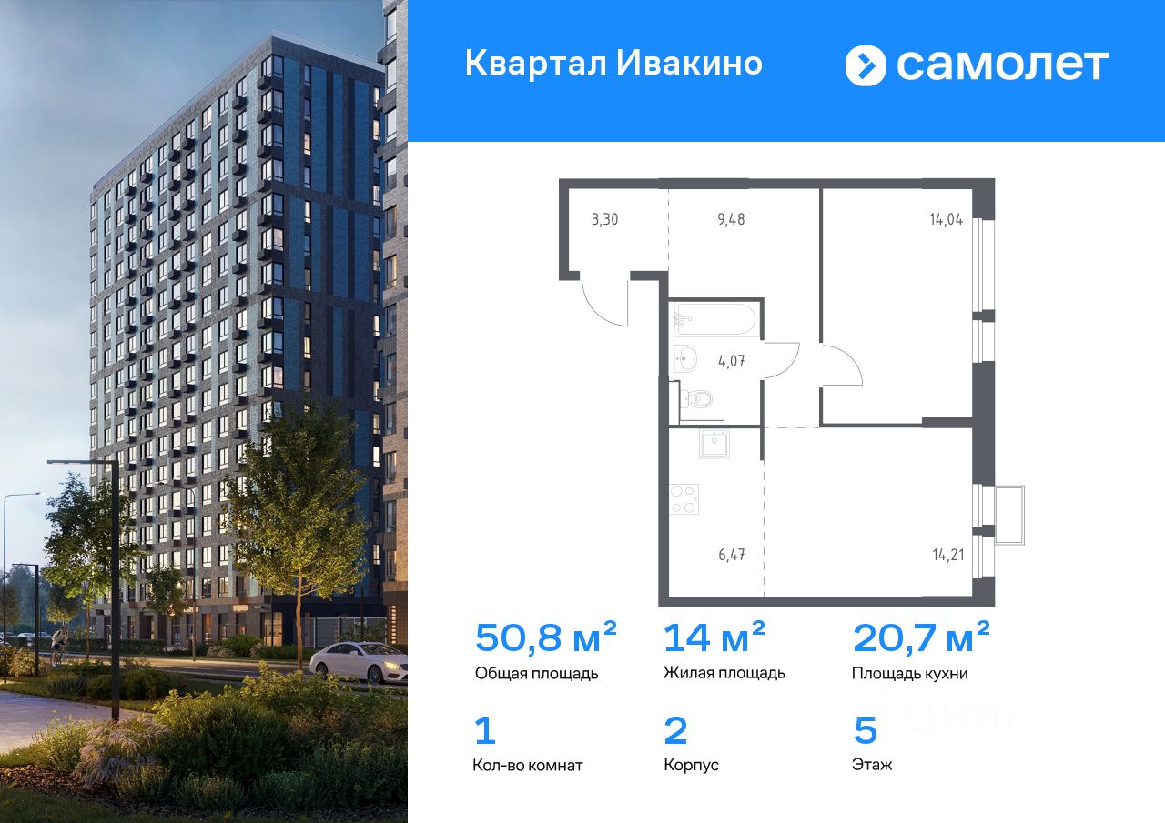 Строим кварталы для жизни с заботой о будущем. Предлагается 1-комнатная квартира комфорт-класса 50,8 кв.м в корпусе 2 на 5 этаже, в ЖК "Квартал Ивакино"