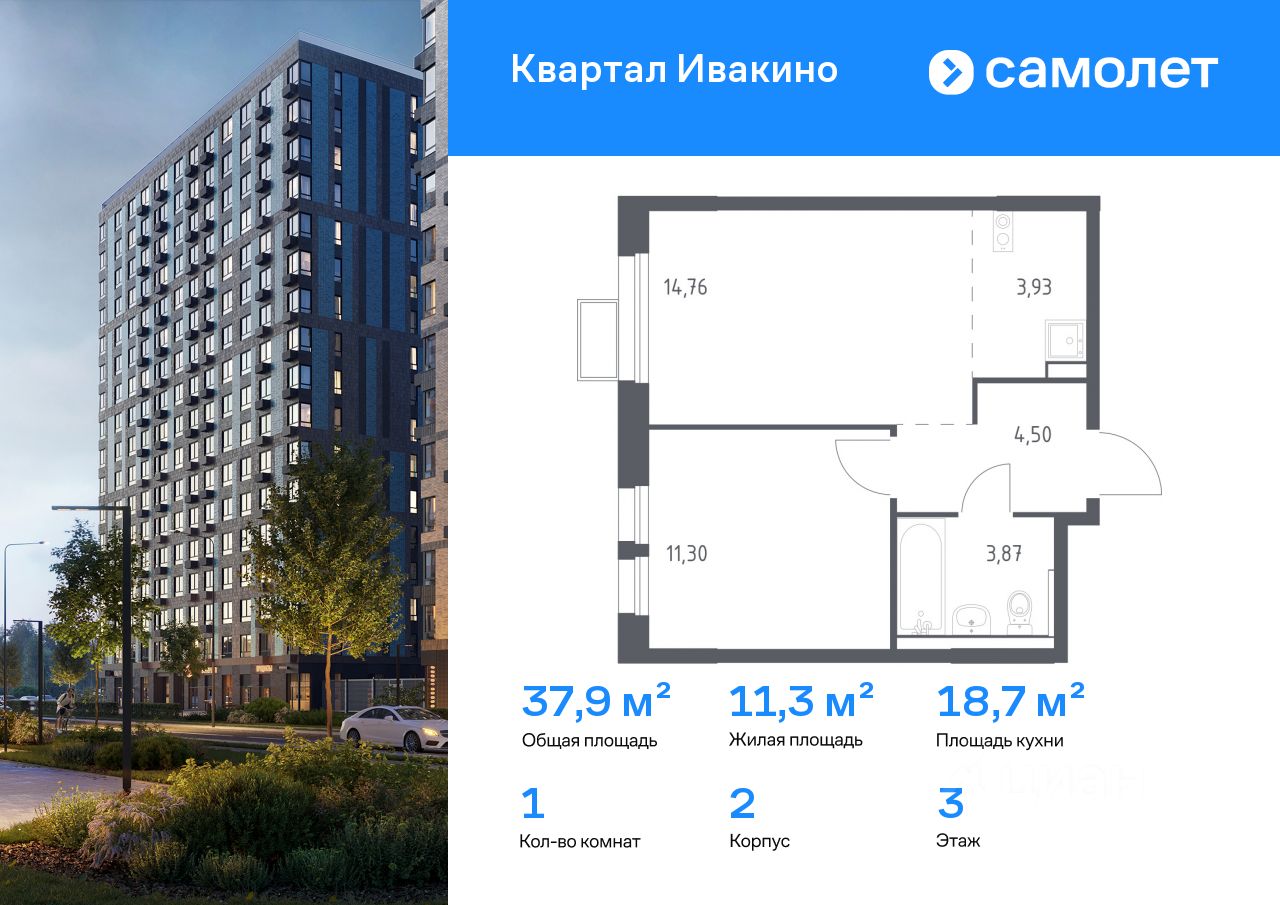 Строим кварталы для жизни с заботой о будущем. Предлагается 1-комнатная квартира комфорт-класса 37,9 кв.м в корпусе 2 на 3 этаже, в ЖК "Квартал Ивакино"