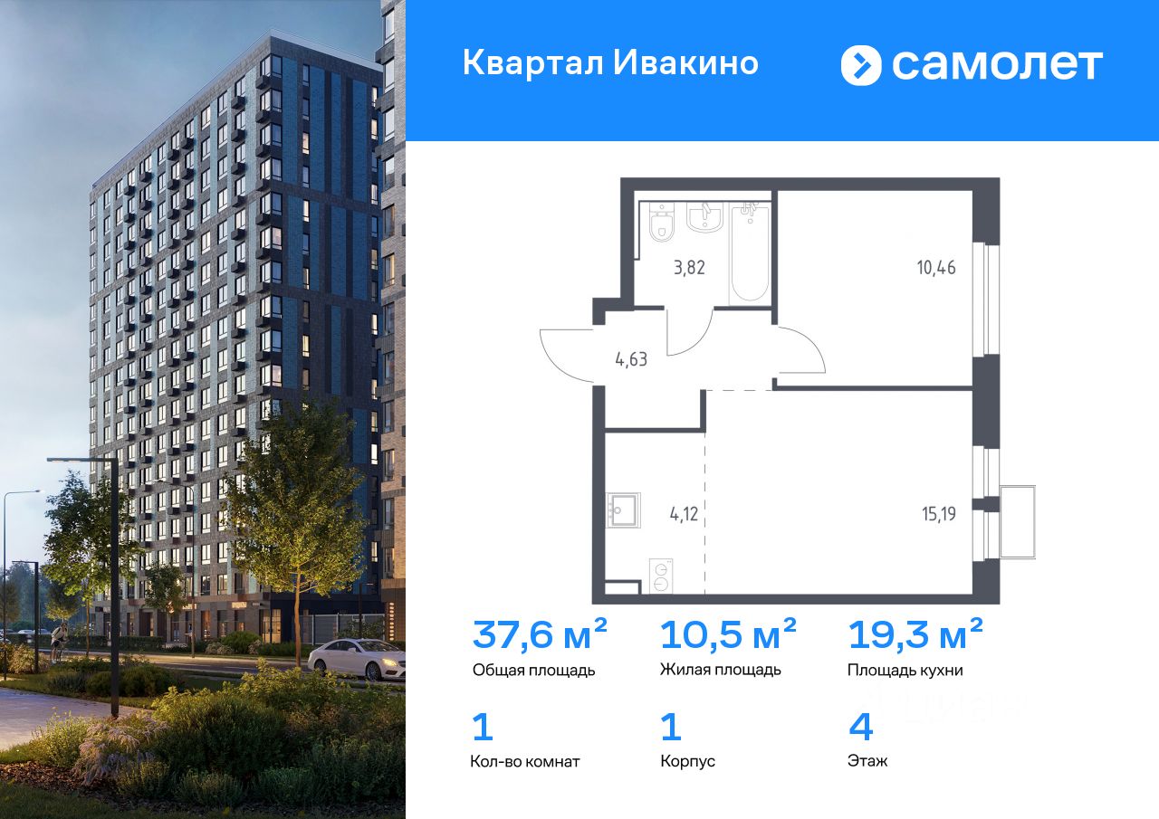 Строим кварталы для жизни с заботой о будущем. Предлагается 1-комнатная квартира комфорт-класса 37,6 кв.м в корпусе 1 на 4 этаже, в ЖК "Квартал Ивакино"
