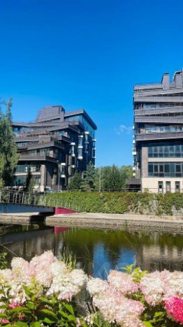 Здесь не отключают горячую воду весь год, есть фильтрация воды, магазины, фитнес, салоны красоты, свои пляж и рыбалка, бассейн, 3 электрозарядки для автомобилей. Комплекс имеет красивейшую территорию в регионе, получил гран при по безопасности и тишине.