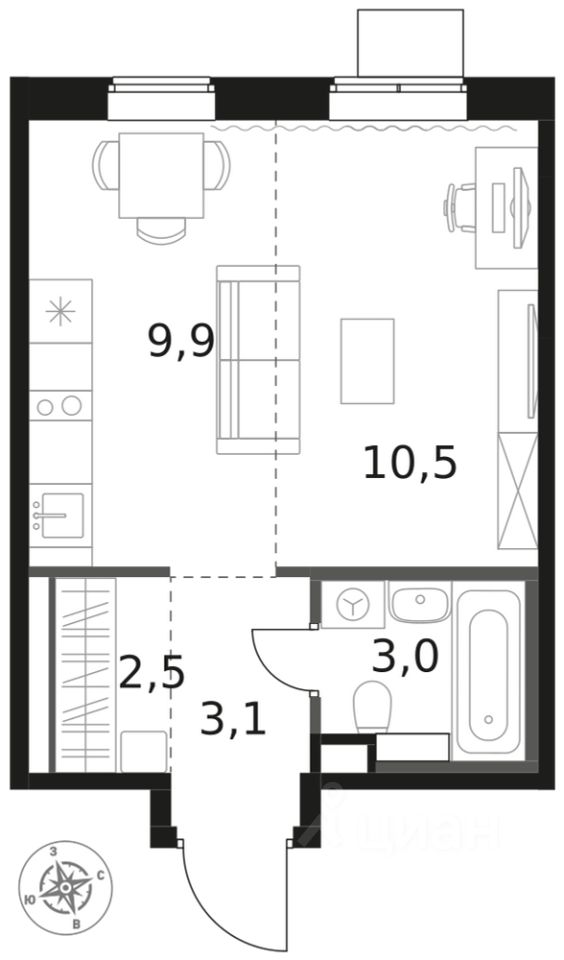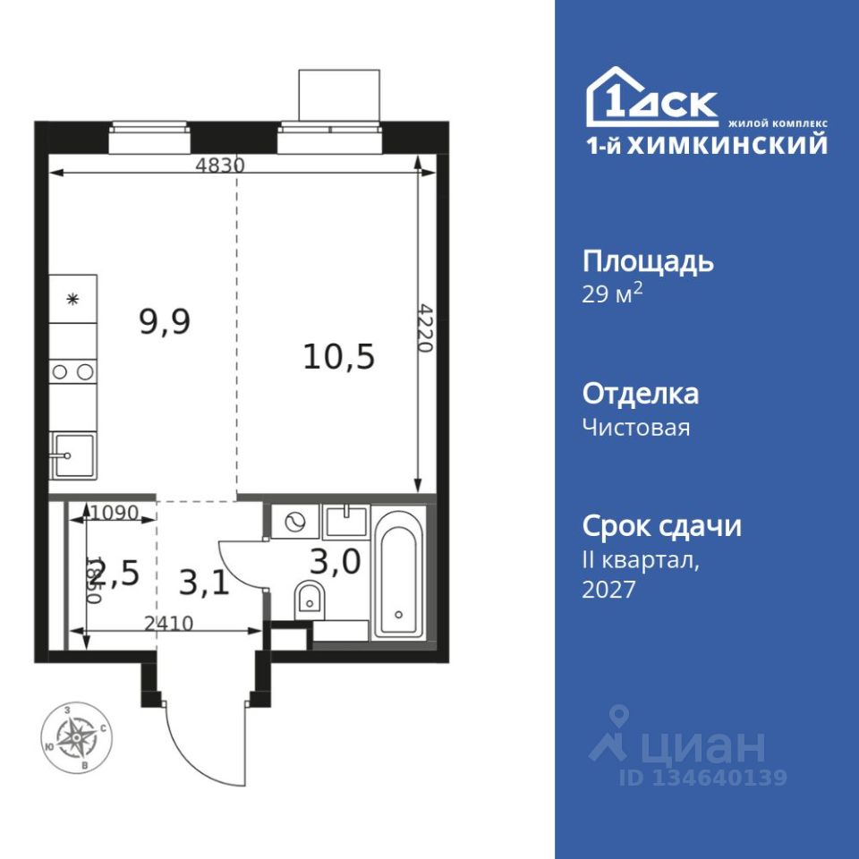 Продаётся квартира-студия номер 281 общей площадью 29 кв.м. на 10-м этаже 14 этажного дома. Чистовая отделка.