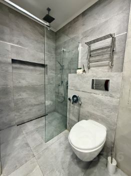 • Вся необходимая техника (встроенная микроволновая печь, духовой шкаф с функцией гриль, встроенный холодильник, индукционная плита, вытяжка) и мебель на кухне, в ванной, в прихожей и гардеробной остается