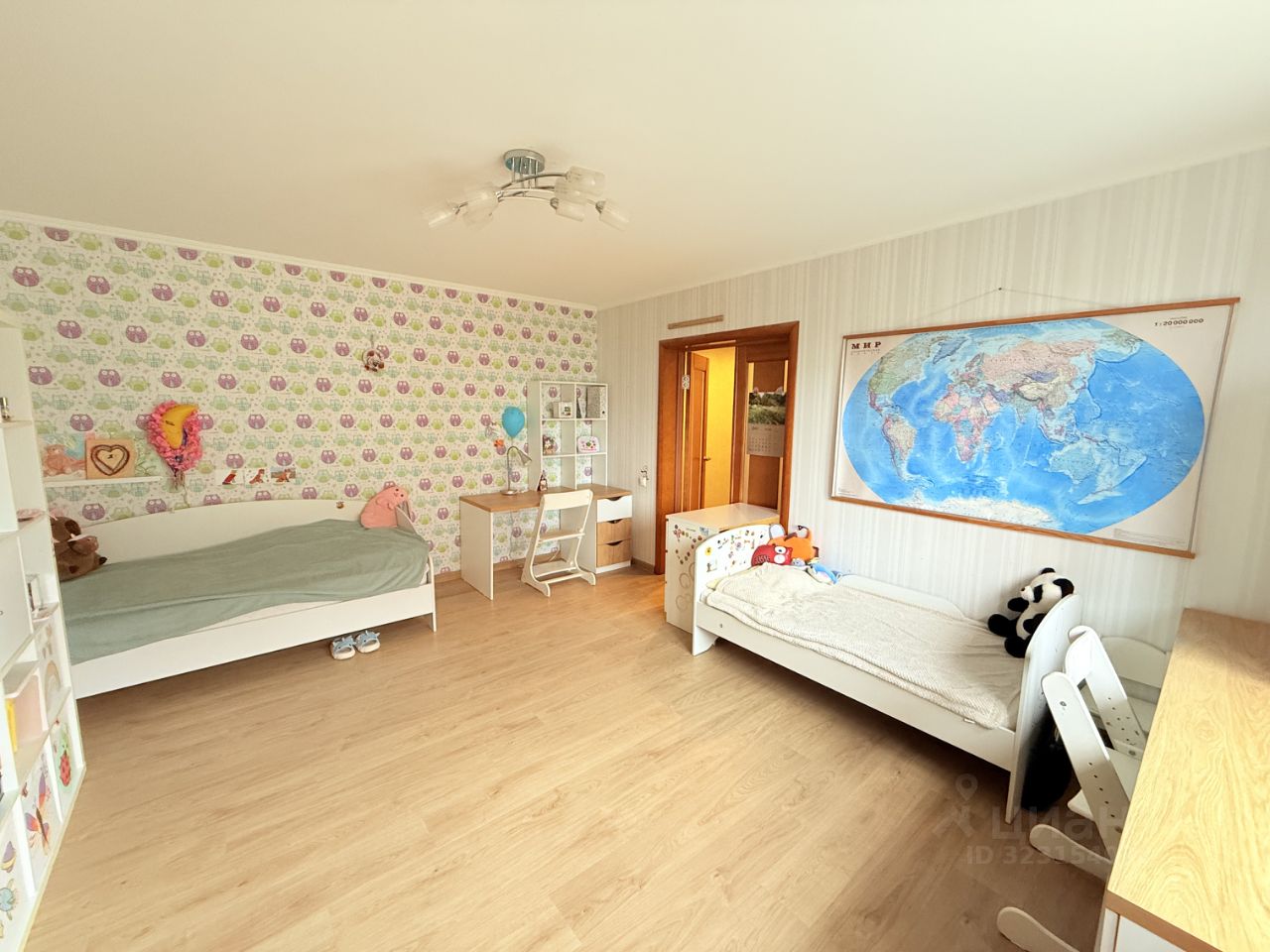 Большая светлая комната с двумя спальными местами и двумя рабочими местами. Большой стеллаж для различного хранения и спортивный уголок.
