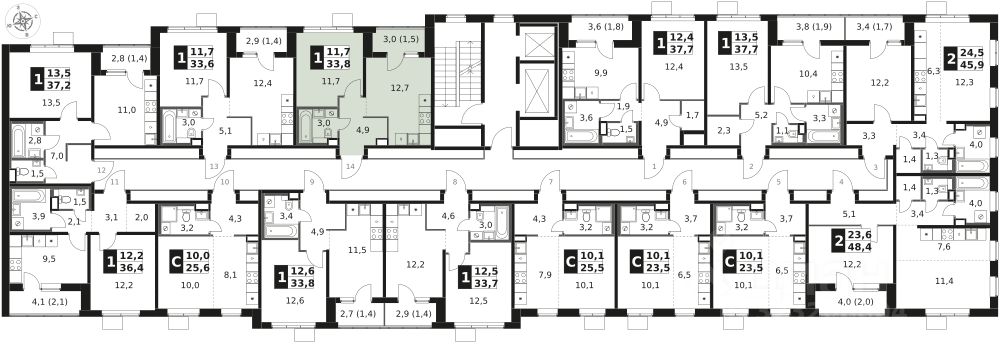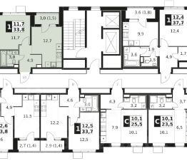 Продаётся 1-к квартира номер 182 общей площадью 33.8 кв.м. на 14-м этаже 17 этажного дома. Отделка Whitebox.