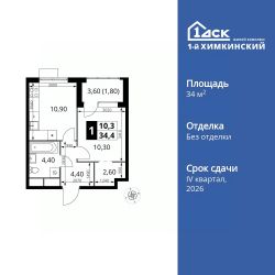 Продаётся 1-к квартира номер 198 общей площадью 34.4 кв.м. на 5-м этаже 16 этажного дома. Без отделки.
