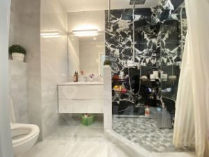 В квартире 3 комнаты: детская, спальня, кухня-гостиная. Здесь продумано всё до мелочей: для вашего удобства предусмотрено более одного санузла, в одном из которых совмещены туалет и ванна, во втором сомещены туалет и постирочная, что является несомненным преимуществом для большой семьи или при приеме гостей. Имеются 2 гардеробные. Вся мебель в квартире сделана на заказ по индивидуальному проекту.