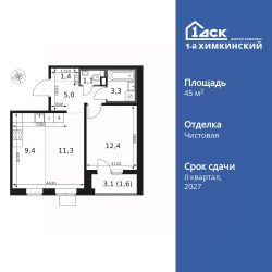 Продаётся 2-к квартира номер 255 общей площадью 45.5 кв.м. на 6-м этаже 14 этажного дома. Чистовая отделка.