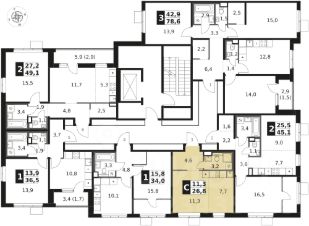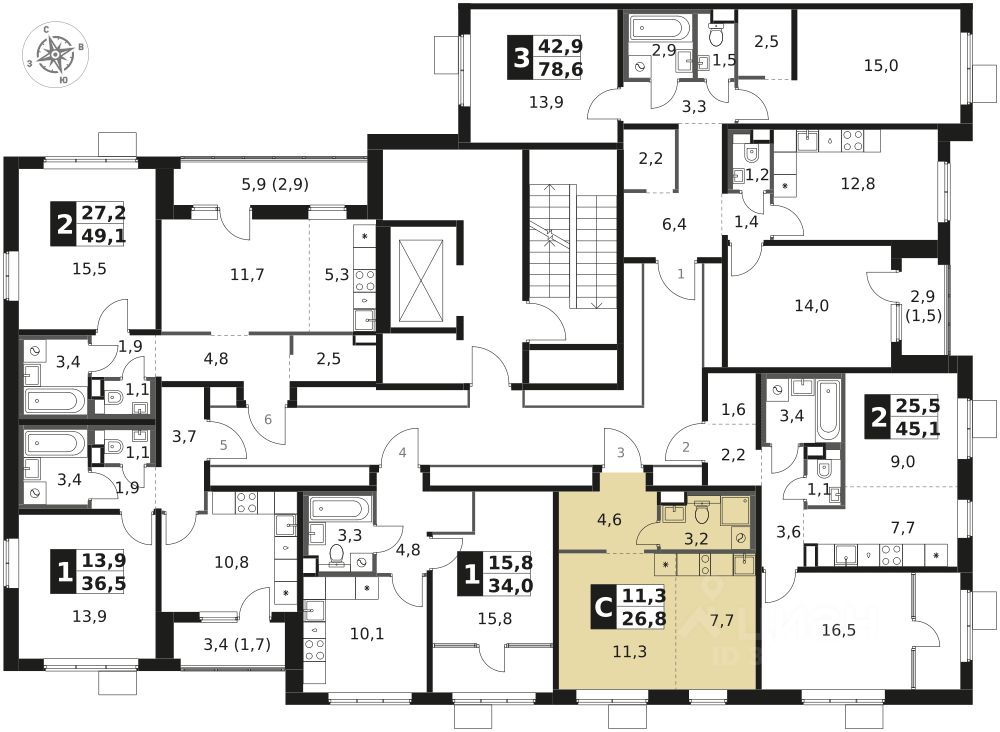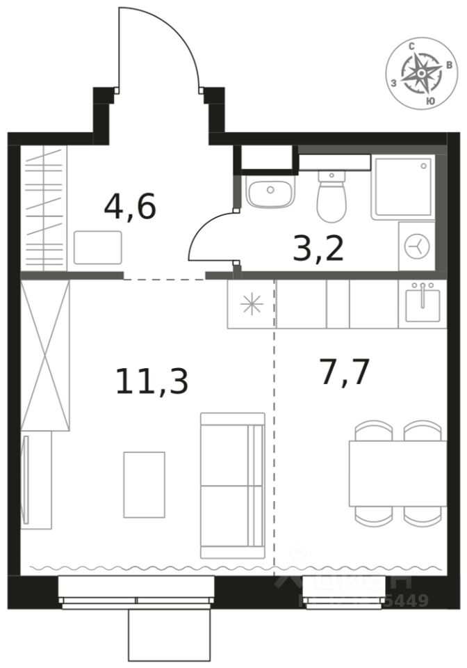 Продаётся квартира-студия номер 336 общей площадью 26.8 кв.м. на 5-м этаже 8 этажного дома. Отделка Whitebox.