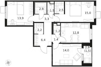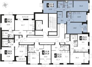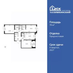 Продаётся 3-к квартира номер 328 общей площадью 78.6 кв.м. на 4-м этаже 8 этажного дома. Отделка Whitebox.