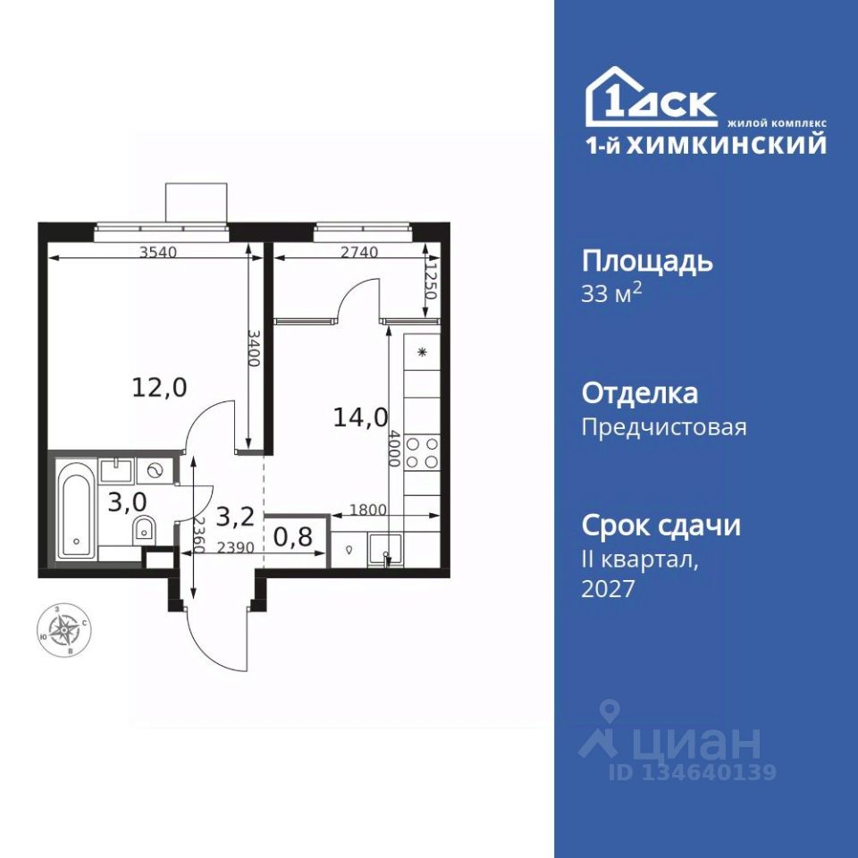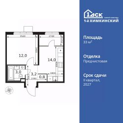 Продаётся 1-к квартира номер 576 общей площадью 33 кв.м. на 7-м этаже 17 этажного здания. Отделка Whitebox.
