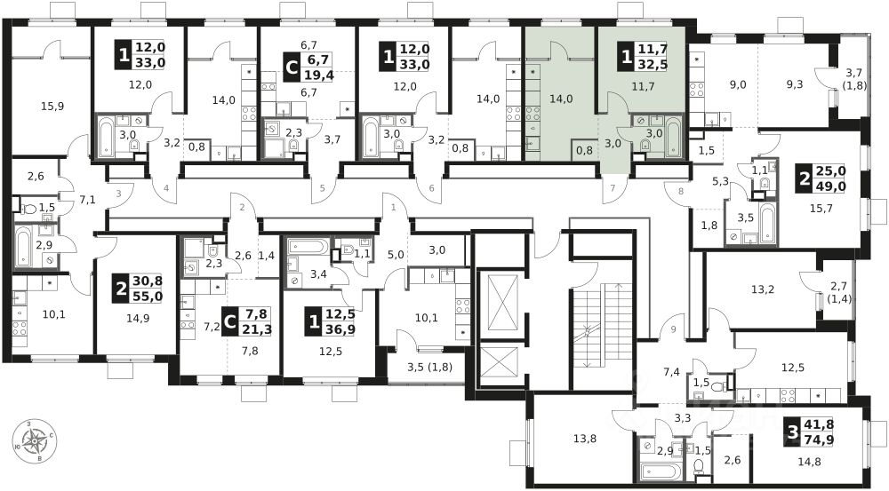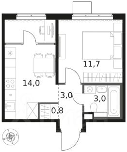 Продаётся 1-к квартира номер 604 общей площадью 32.5 кв.м. на 10-м этаже 17 этажного дома. Отделка Whitebox.