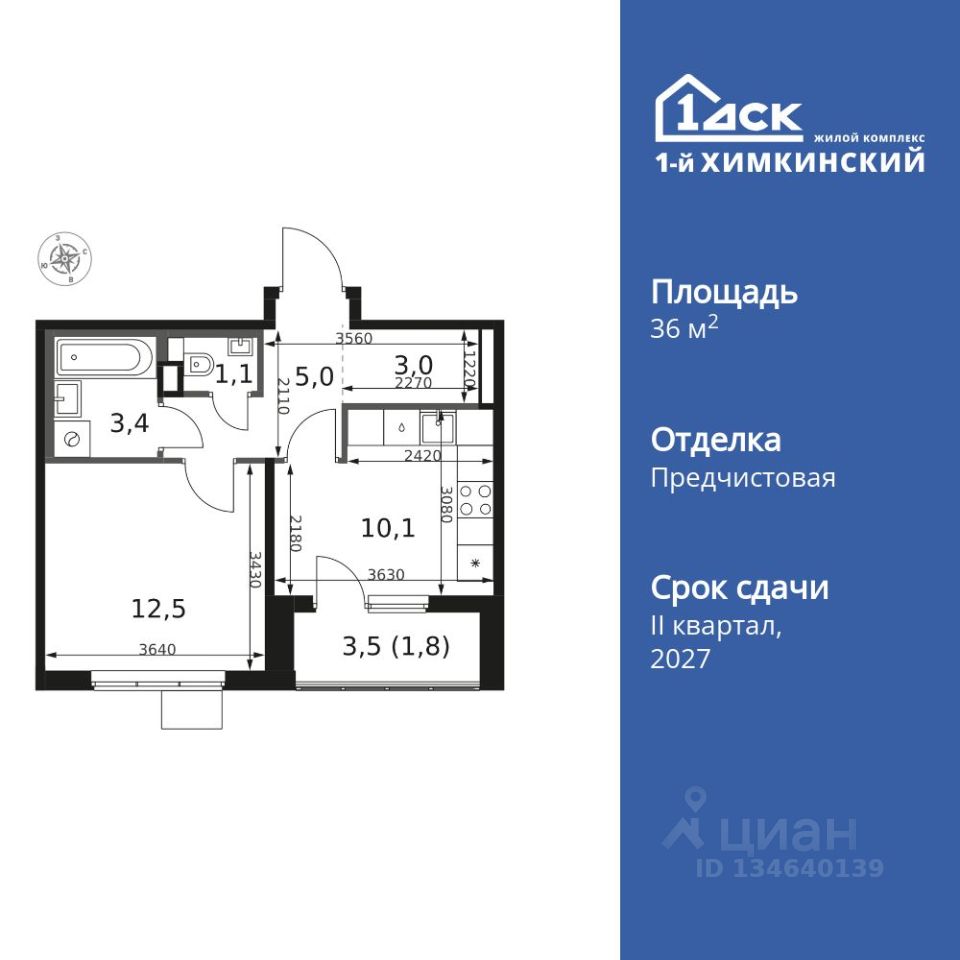 Продаётся 1-к квартира номер 616 общей площадью 36.9 кв.м. на 12-м этаже 17 этажного здания. Отделка Whitebox.
