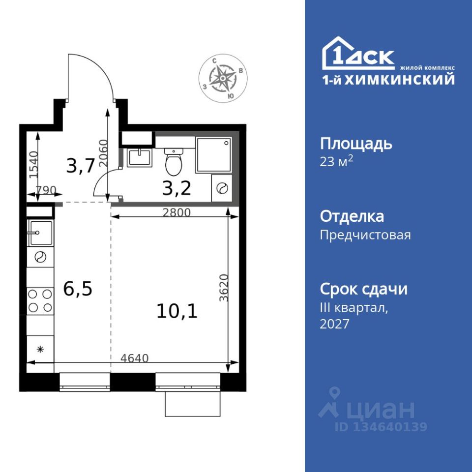 Продаётся квартира-студия номер 206 общей площадью 23.5 кв.м. на 16-м этаже 17 этажного здания. Отделка Whitebox. Цена с учётом скидки.