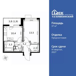 Продаётся 1-к квартира номер 69 общей площадью 37.8 кв.м. на 6-м этаже 17 этажного здания. Отделка Whitebox. Цена с учётом скидки.