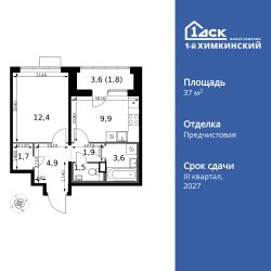 Продаётся 1-к квартира номер 140 общей площадью 37.7 кв.м. на 11-м этаже 17 этажного здания. Отделка Whitebox. Цена с учётом скидки.