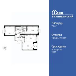 Продаётся 3-к квартира номер 284 общей площадью 74.8 кв.м. на 5-м этаже 6 этажного здания. Отделка Whitebox. Цена с учётом скидки.