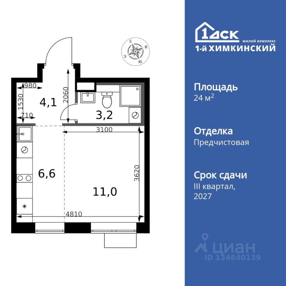 Продаётся квартира-студия номер 588 общей площадью 24.9 кв.м. на 8-м этаже 16 этажного дома. Отделка Whitebox. Цена с учётом скидки!