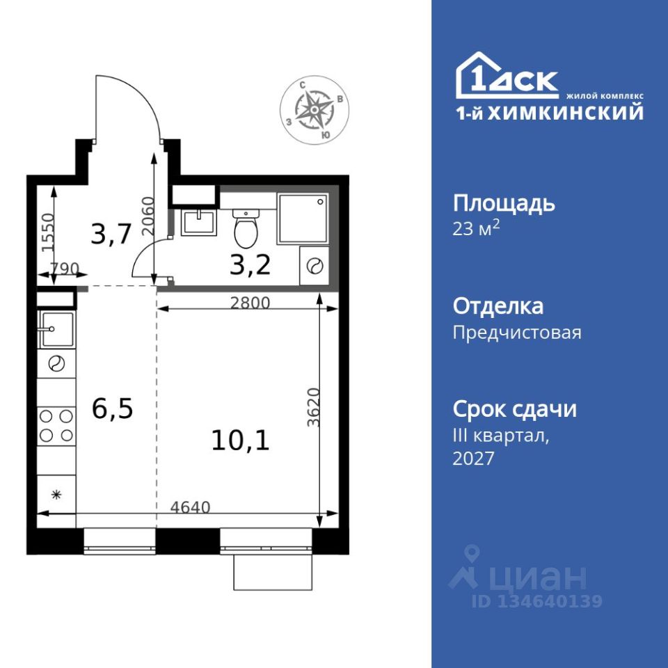 Продаётся квартира-студия номер 205 общей площадью 23.5 кв.м. на 16-м этаже 17 этажного здания. Отделка Whitebox. Цена с учётом скидки.