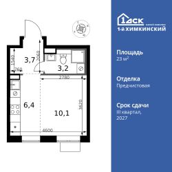 Продаётся квартира-студия номер 23 общей площадью 23.4 кв.м. на 3-м этаже 17 этажного здания. Отделка Whitebox. Цена с учётом скидки.