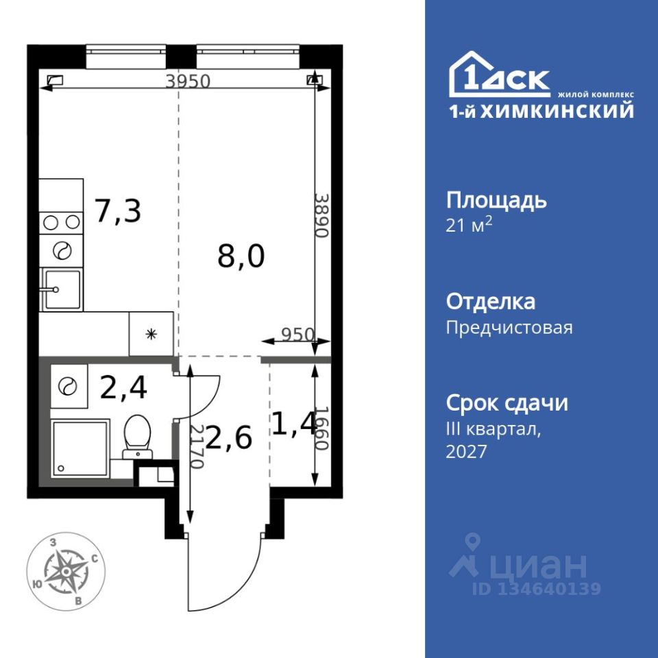 Продаётся квартира-студия номер 264 общей площадью 21.7 кв.м. на 2-м этаже 6 этажного здания. Отделка Whitebox. Цена с учётом скидки.