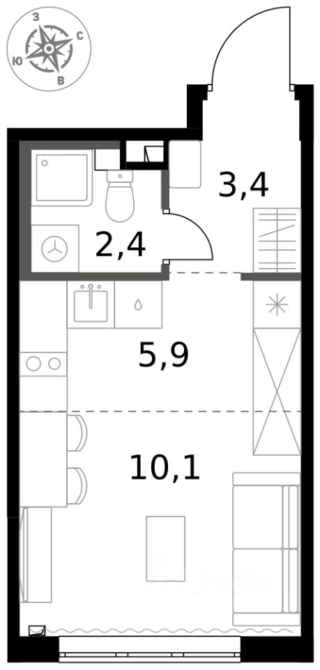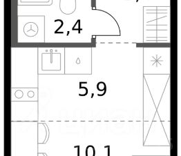Продаётся квартира-студия номер 303 общей площадью 21.8 кв.м. на 2-м этаже 6 этажного здания. Отделка Whitebox. Цена с учётом скидки.