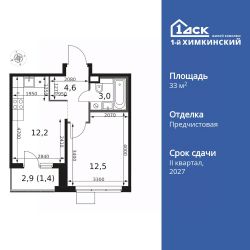 Продаётся 1-к квартира номер 134 общей площадью 33.7 кв.м. на 11-м этаже 17 этажного здания. Отделка Whitebox.