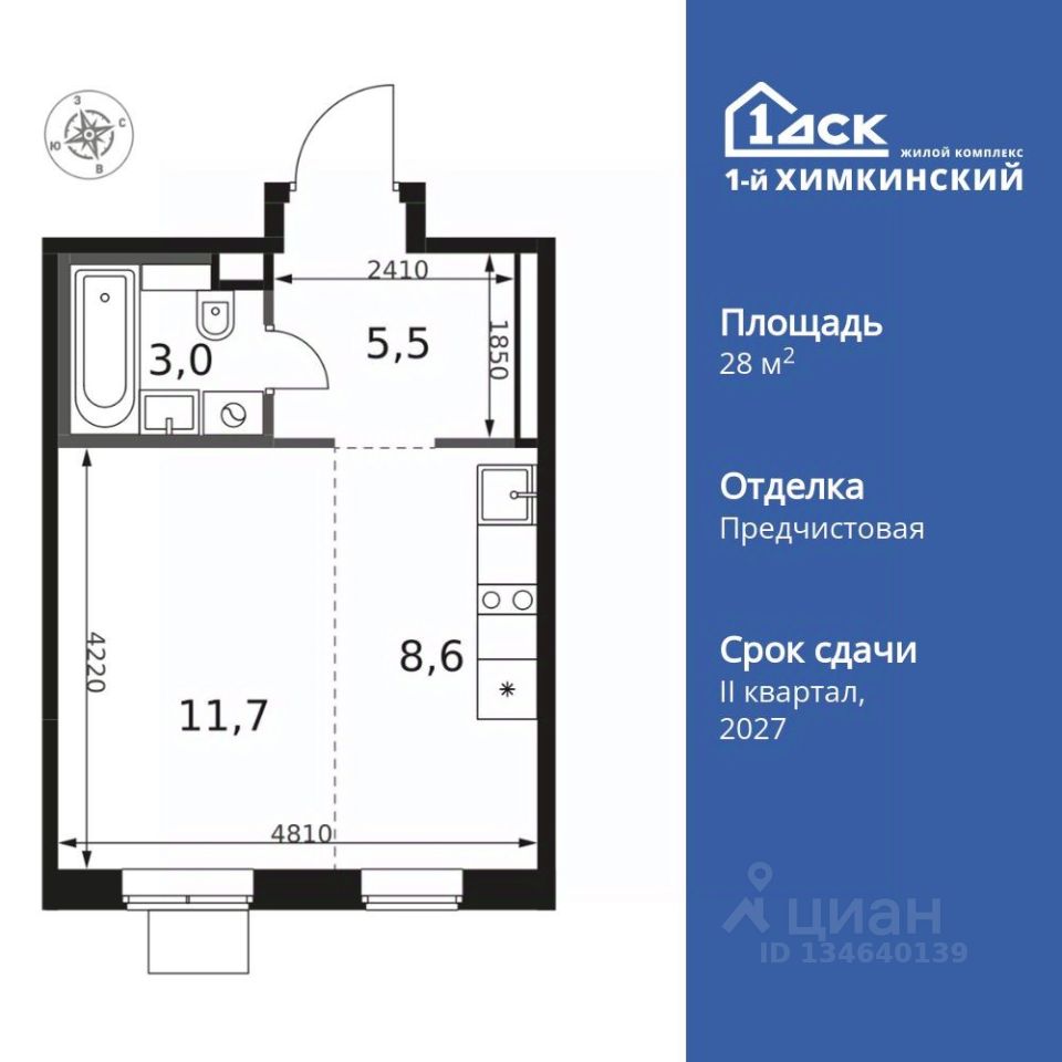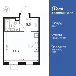 Продаётся квартира-студия номер 393 общей площадью 28.8 кв.м. на 7-м этаже 12 этажного здания. Отделка Whitebox.