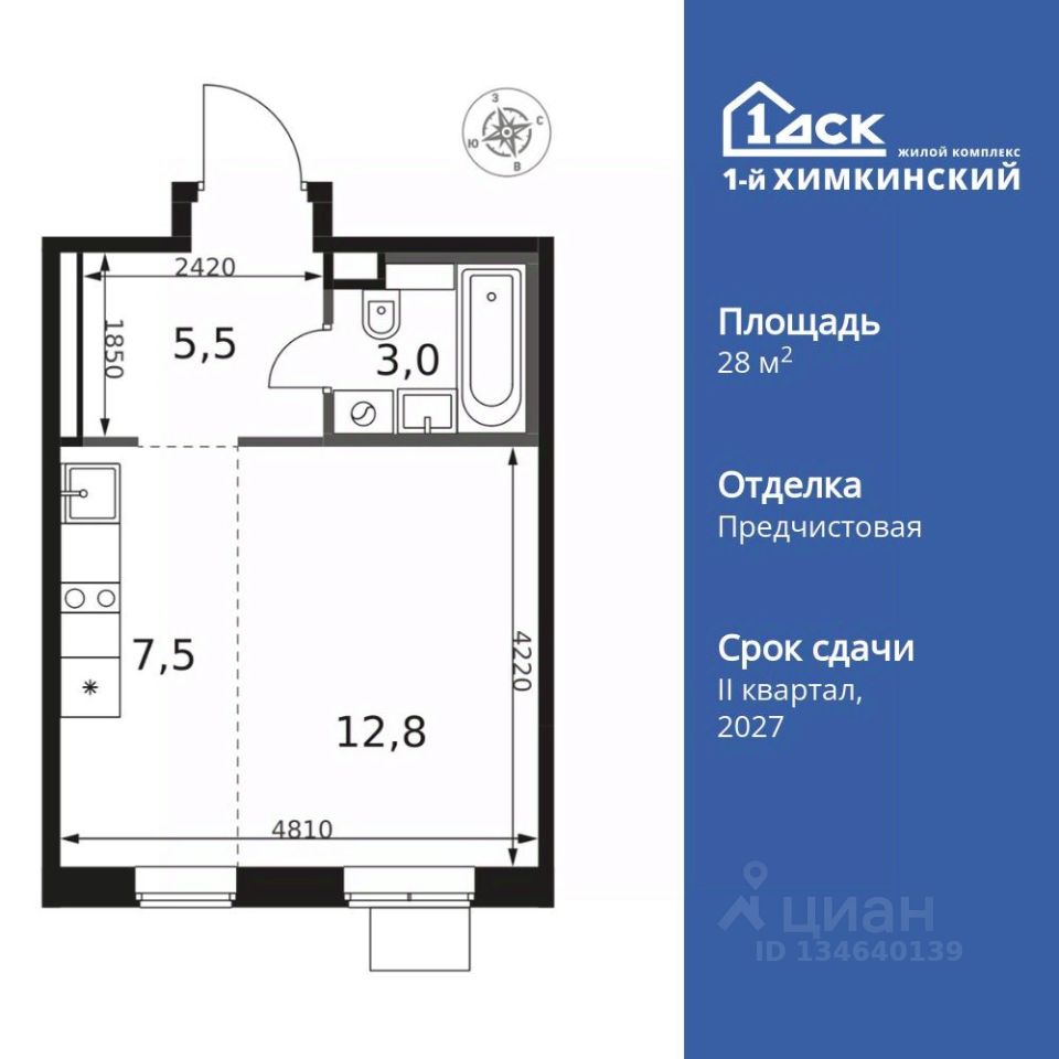 Продаётся квартира-студия номер 469 общей площадью 28.8 кв.м. на 6-м этаже 14 этажного здания. Отделка Whitebox.
