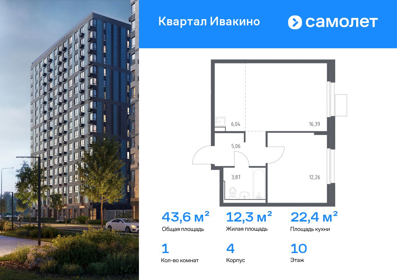 Строим кварталы для жизни с заботой о будущем. Предлагается 1-комнатная квартира комфорт-класса 43,62 кв.м в корпусе 4 на 10 этаже, в ЖК "Квартал Ивакино"