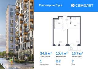 Строим кварталы для жизни с заботой о будущем. Предлагается 1-комнатная квартира комфорт-класса 34,9 кв.м в корпусе 2.2 на 7 этаже, в ЖК "Пятницкие Луга"