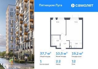 Строим кварталы для жизни с заботой о будущем. Предлагается 1-комнатная квартира комфорт-класса 37,7 кв.м в корпусе 2.2 на 12 этаже, в ЖК "Пятницкие Луга"