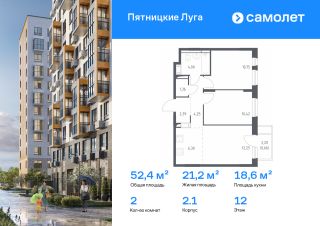 Строим кварталы для жизни с заботой о будущем. Предлагается 2-комнатная квартира комфорт-класса 52,38 кв.м в корпусе 2.1 на 12 этаже, в ЖК "Пятницкие Луга"