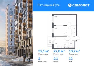 Строим кварталы для жизни с заботой о будущем. Предлагается 2-комнатная квартира комфорт-класса 52,06 кв.м в корпусе 2.1 на 12 этаже, в ЖК "Пятницкие Луга"