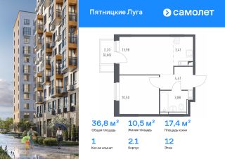 Строим кварталы для жизни с заботой о будущем. Предлагается 1-комнатная квартира комфорт-класса 36,84 кв.м в корпусе 2.1 на 12 этаже, в ЖК "Пятницкие Луга"