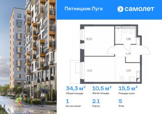 Строим кварталы для жизни с заботой о будущем. Предлагается 1-комнатная квартира комфорт-класса 34,33 кв.м в корпусе 2.1 на 5 этаже, в ЖК "Пятницкие Луга"