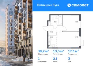 Строим кварталы для жизни с заботой о будущем. Предлагается 1-комнатная квартира комфорт-класса 36,18 кв.м в корпусе 2.1 на 3 этаже, в ЖК "Пятницкие Луга"