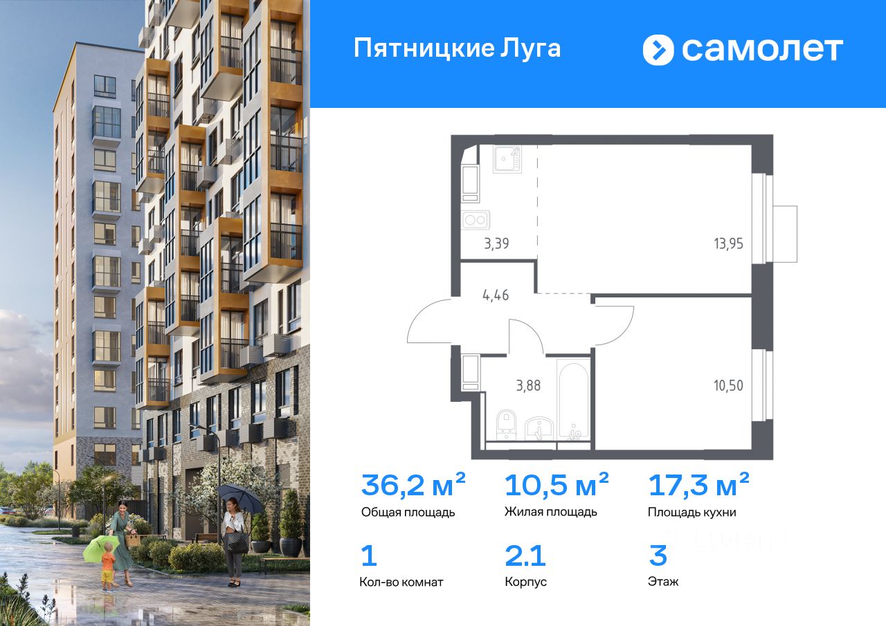 Строим кварталы для жизни с заботой о будущем. Предлагается 1-комнатная квартира комфорт-класса 36,18 кв.м в корпусе 2.1 на 3 этаже, в ЖК "Пятницкие Луга"