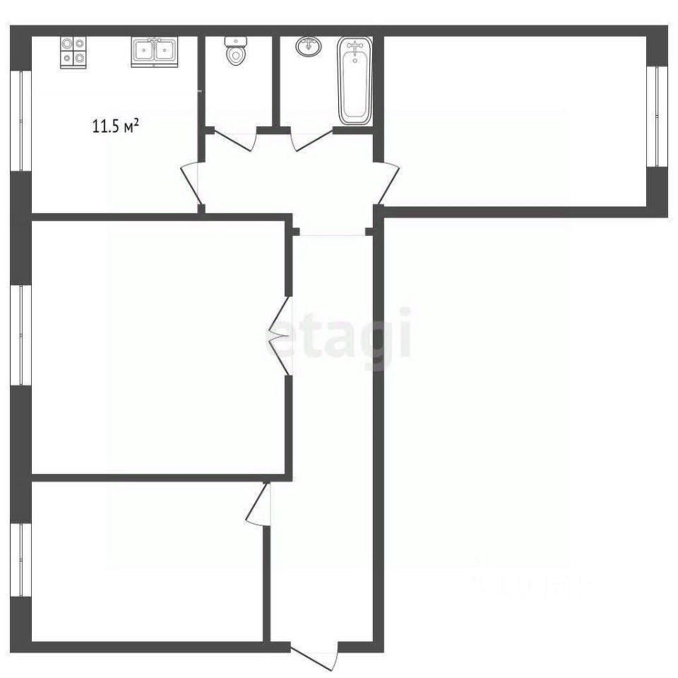 - комнаты 18,7 кв.м, 11,5 кв.м и 9 кв.м