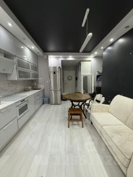 Две изолированные комнаты, качественные глухие двери, хорошая звукоизоляция, просторная кухня гостиная, один туалет + постирочная, второй туалет и просторная ванная комната в керамограните с большой хорошей дорогой раковиной, с большим душем. На потолке французский экологичный, не выделяющим никаких вредных веществ, потолок Clipso.