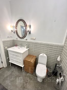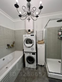 Просторный совмещенный санузел с ванной 190 см, душевой кабиной, стиральной машина bosch, паркетная доска премиум класса.