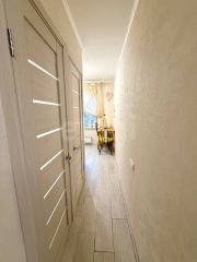 В квартире в 2024 году сделан капитальный ремонт с заменой всех инженерных систем отопления, сантехники и электрики. Выровнены стены, проложена новая электропроводка. Установлены новые счетчики холодной и горячей воды. В комнатах на полу ламинат, на кухне, в прихожей и санузле керамогранит.